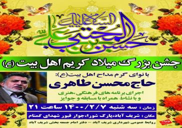 📸 به گزارش پایگاه اطلاع رسانی شهرداری شریف آباد ، مراسم جشن میلاد با سر سعادت کریم آل طاها ، امام حسن مجتبی علیه السلام در فضای باز و با رعایت اصول بهداشتی برگزار میگردد.