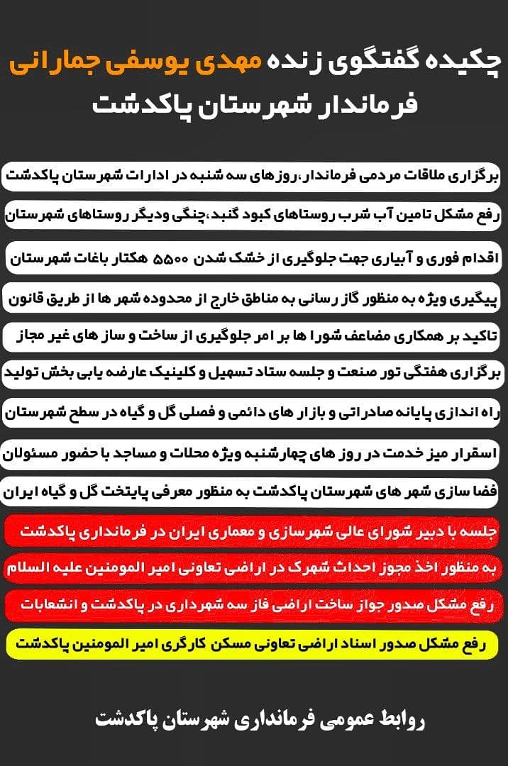 چکیده گفتگوی زنده مهدی یوسفی جمارانی فرماندار شهرستان پاکدشت